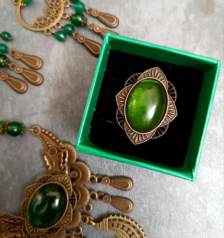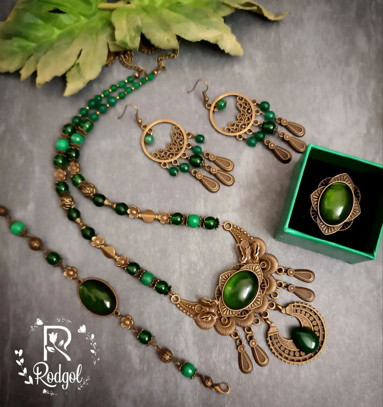 واقعا نیازی به تعریف نداره ست سنگی خاص و زیبا تقدیم به شما ساخته شده از سنگ لعل و جید فلزات:برنز با عشق: گردنبند: دستبند ۱۷۳ گوشواره ۲۱۹ انگشتر ۱۳۰ ارسال به از طریق #زیورآلات#انگشتر #زیورآلات_سنگی #زندگی