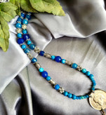 یه گردنبند بسیار خاص سنگی با پلاک سکه های پهلوی ساخته شده از سنگ جید و صدف