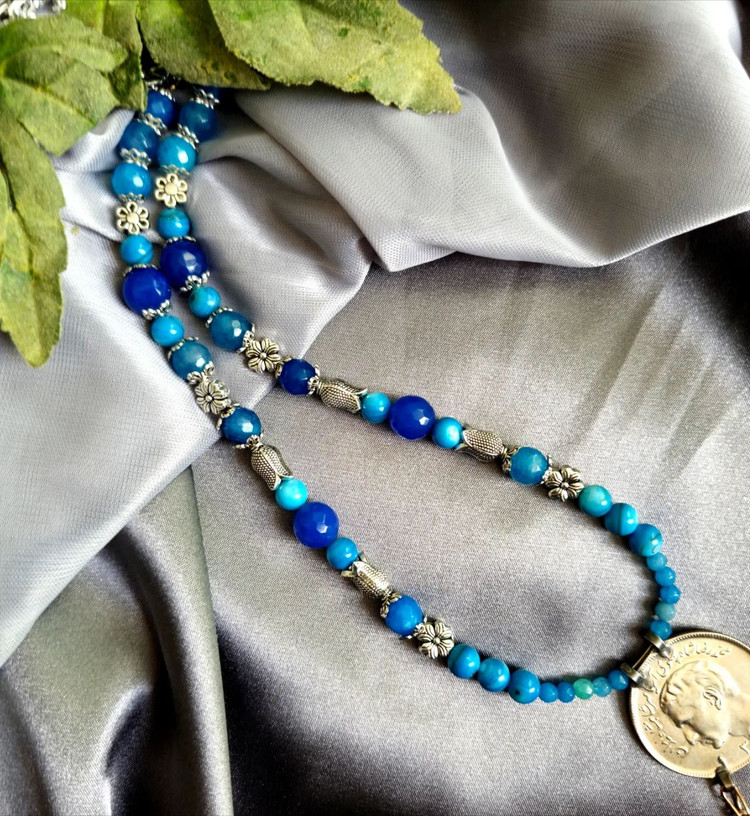 گردنبند سنگی با پلاک ورشو سکه_پهلوی