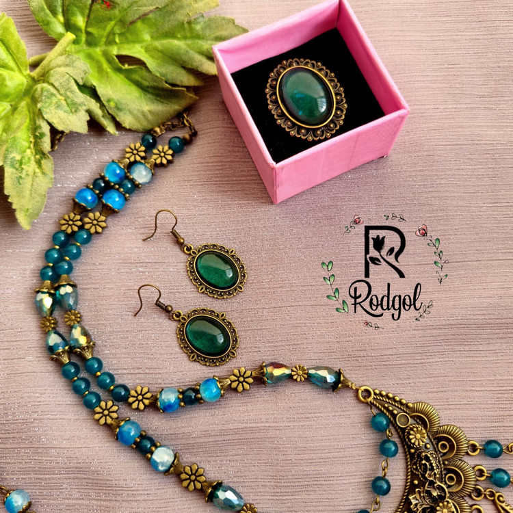 ست جذاب و زیبا تقدیم به نگاه زیبای شما از طریق با احترام گردنبند ۳۷۹ دستبند ۱۸۰ گوشواره ۱۶۹ انگشتر ۱۳۰ ساخته شده از سنگ لعل و سنگهای مصنوعی و کریستال فلزات:برنز ارسال به # #