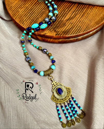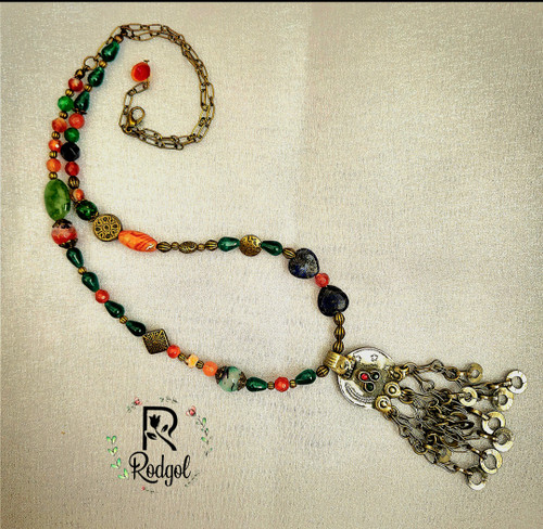 گردنبند سنگی فوقالعاده خاص پر از سنگهای زیبا با پلاک ورشو قدیمی